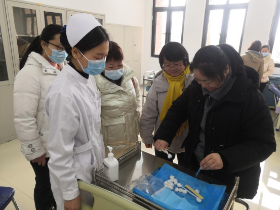 此次培训围绕养老护理人员职业规范、老年人照护工作规范、失智老年人照护、老年人应急救护、国外养老机构运营概况等内容对学员进行理论和实操培训。针对专业及学情特点,此次培训课程把实操课程比例提高到了一半左右,同时坚持理论与实操融合进行,教师指导实操与学员亲身实操融合进行,提高了培训效能。此外,此次培训配备了线上课程,线下课程结束后学员即可在闲余时间在线学习。