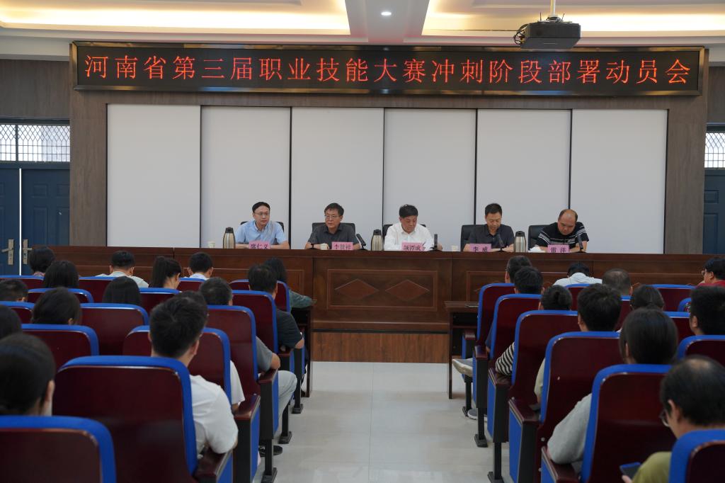 战鼓惊雷起,沙场秋点兵。9月4日,在距河南省第三届职业技能大赛开赛还剩20天的冲刺阶段,我院在天鹅湖校区举行会议,为参赛选手加油鼓劲,对备赛、参赛等工作提出要求。院长颉潭成、市人社局副局长李威、正县级干部李赞祥、市职业技能等级评价事务中心主任雷洋出席部署会,人事处、学生处、教务处和各院部负责人以及25个赛项的选手、指导教师参加会议。