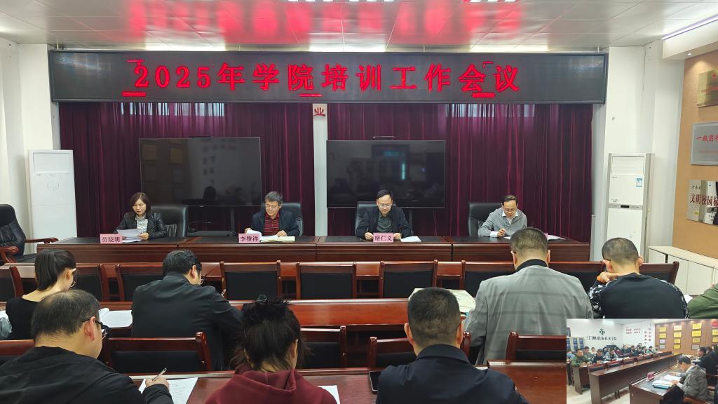 为更好履行学院育训并重的法定职责,高质量服务地方经济社会发展。4月11日,学院召开会议,总结上年度学院培训工作,安排部署2025年度培训和职业技能认定等工作。学院正县级干部李赞祥出席会议,各院部主管领导及相关工作人员参会。