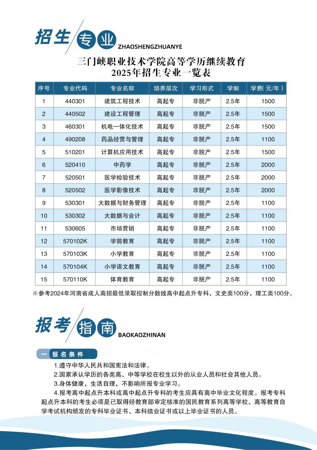 三门峡职业技术学院高等学历继续教育2025年招生简章
