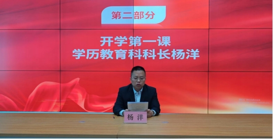 学历教育科科长杨洋做了入学教育,对学生的资格审查、学费缴纳、学籍注册、学籍异动、档案管理等做了要求和解释,希望同学们在校期间,遇到学习方面的,主动联系学校,只通过官方渠道解决个人问题,向官方寻求帮助,避免上当受骗,祝每一个人都能够都能学校收获知识,收获成长。