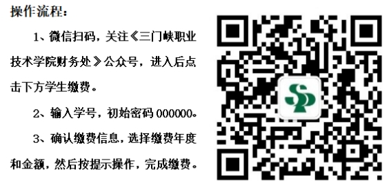 学校财务处(缴费)微信公众号为学校官方缴费通道。学费按学年收取。学生扫描二维码,按缴费流程进行缴费。学生缴费以支付扣费成功为准,缴费系统2026年3月6日开通。