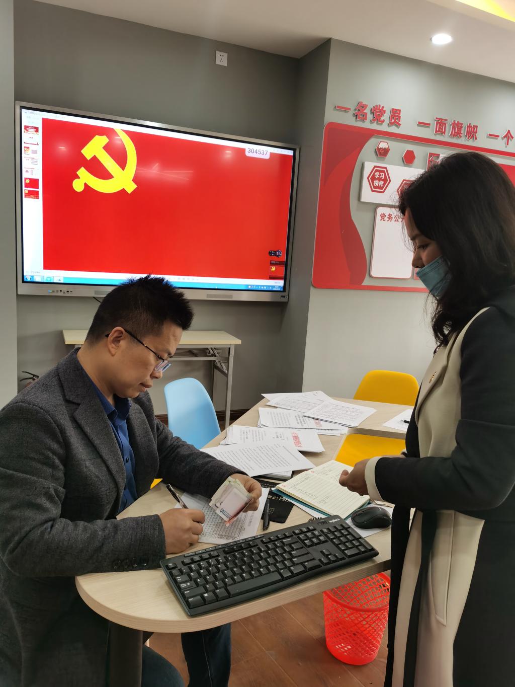 第二项活动,全体党员交纳党费。