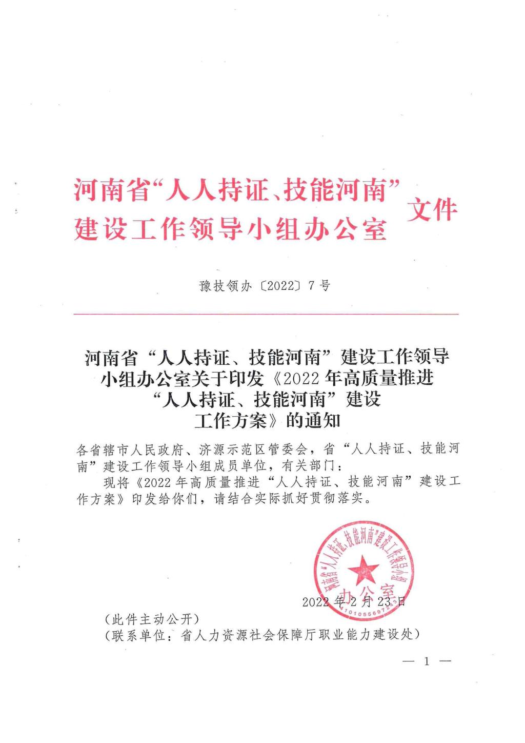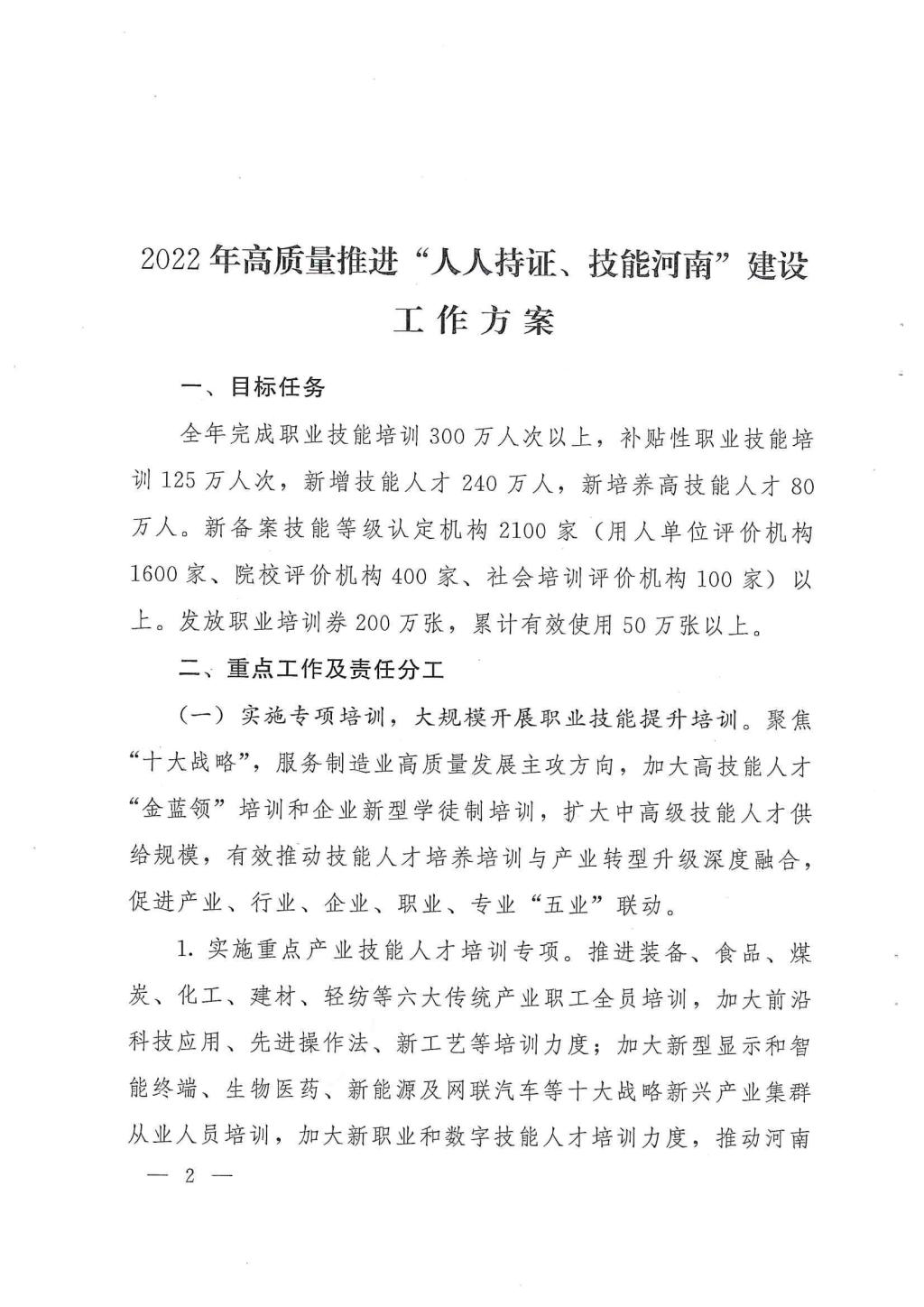 2022年河南省“人人持证”工作方案